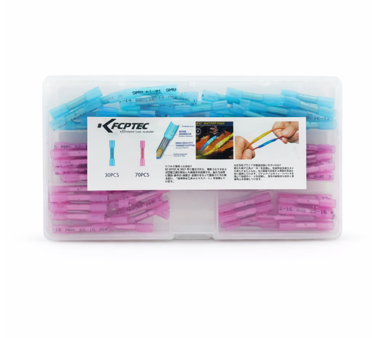 熱収縮コネクタ AWG16-14/22-16 (1.5-2.5 mm2, 0.5-1.5mm2) 青30個 赤70個